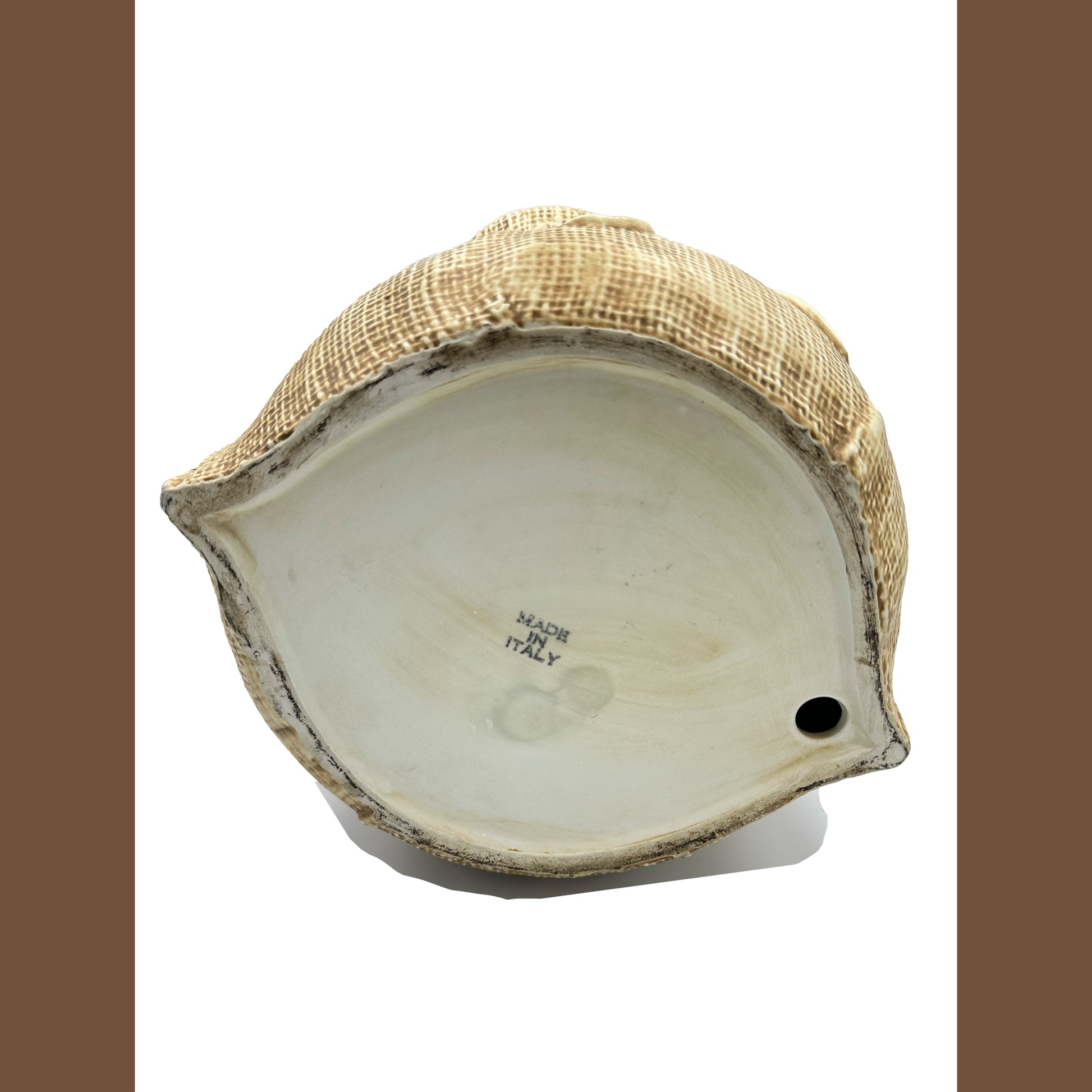 The burlap sack base is especially delightful, textured to mimic woven fibers and tied rope, giving the entire piece a warm, rustic, old-world feel. This is the kind of Italian ceramic that instantly brightens a kitchen shelf, a bar cart, or a stylish pantry vignette.