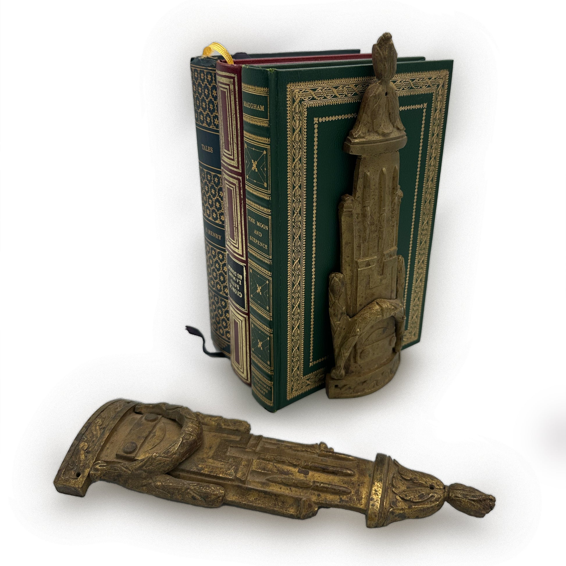 Originally intended as decorative appliqués for fine furniture or architectural interiors, these mounts now stand beautifully on their own as statement objects. Their substantial weight and time-worn patina lend authenticity and charm, whether repurposed as wall décor, incorporated into a design project, or even imaginatively re-used as bookends (as pictured).
