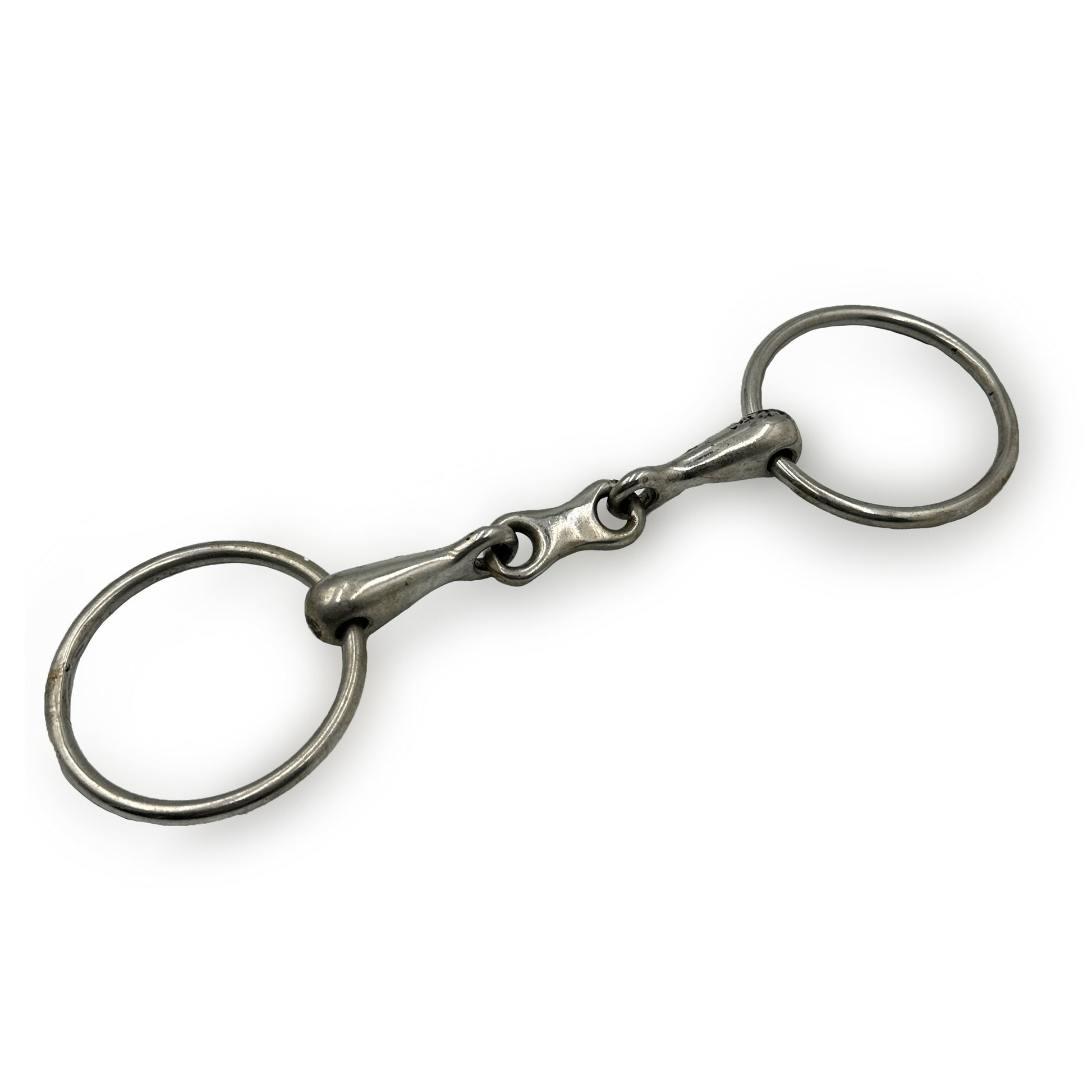 A classic equestrian relic, this solid metal loose ring snaffle bit captures the enduring traditions of horsemanship. Designed with dual rings and a jointed mouthpiece, it reflects the craftsmanship of mid-20th century tack. Functional yet timeless in design. Today, it stands as much a decorative object as a riding tool, its patina and wear speaking to years of use and history.
